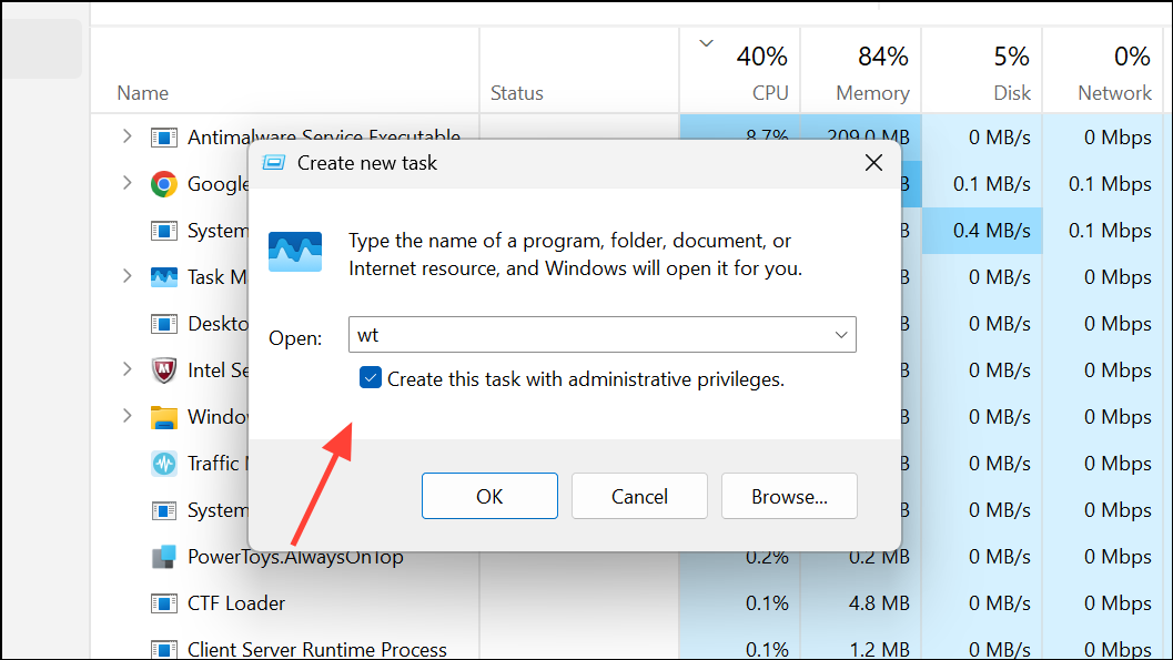 Open Windows Terminal as Administrator Using Task Manager