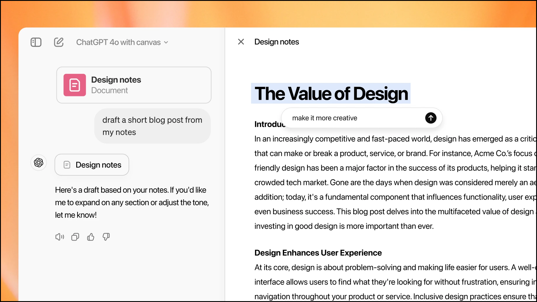With Canvas, the process becomes extremely easy. Not only is it easier to suggest changes to the chatbot and track them, but you can also make edits to the output yourself. At any time, it's also possible to revert to a previous version using the back button in Canvas. The whole setup is overall more practical and would make a stark difference to your workflow.