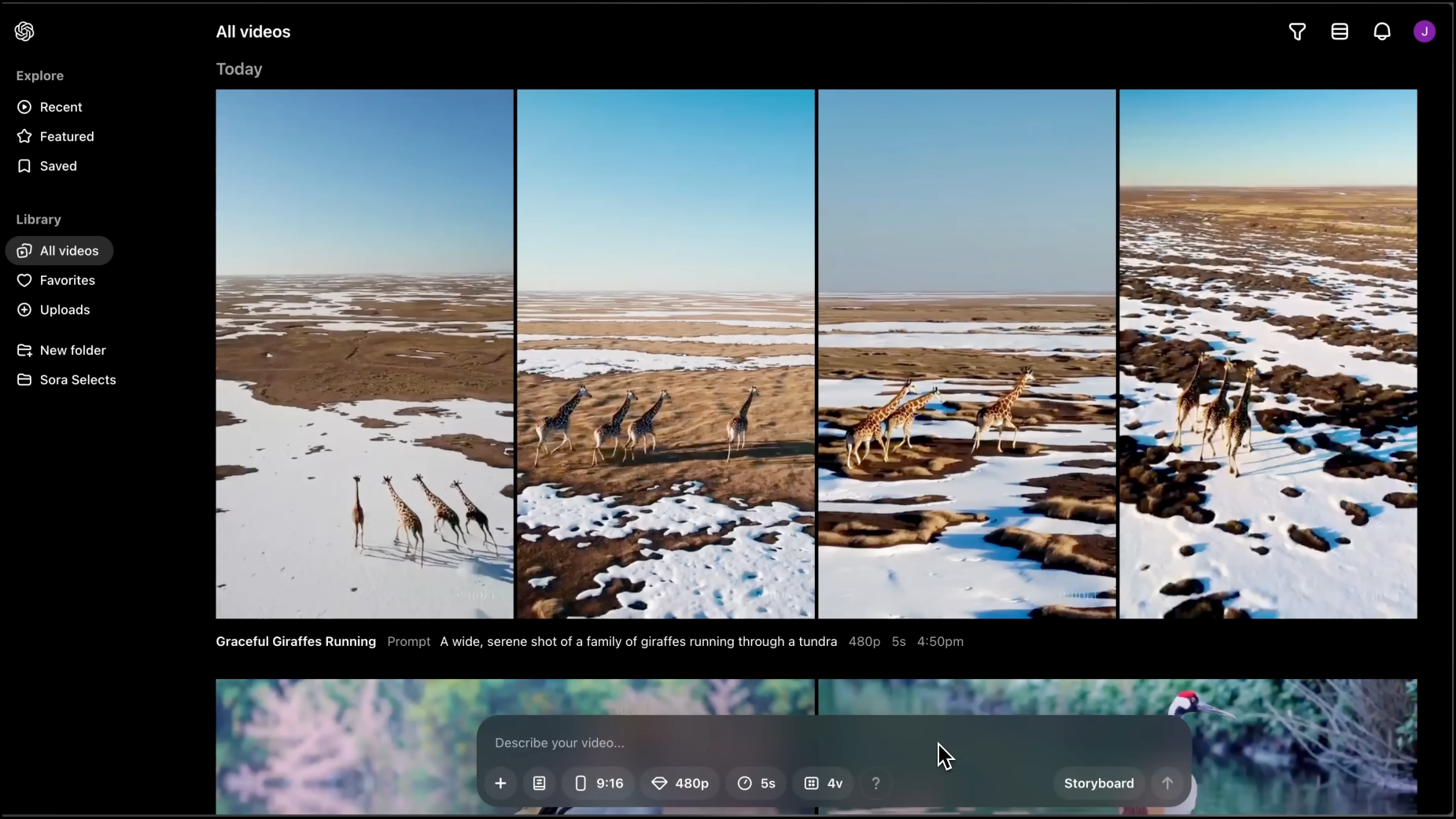 Sora comes with a bunch of features, like Remix which allows you to change certain parts of the video through text prompts, Recut for extending any isolated scenes from a video, Style Presets, Loop, and Blend to seamlessly combine two videos.