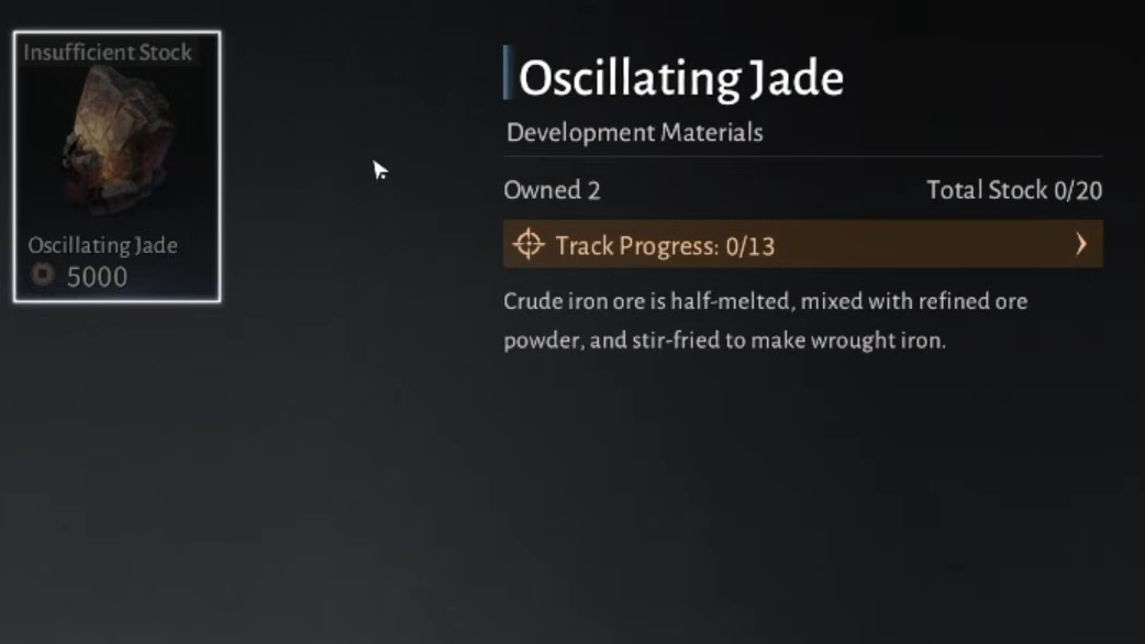 Oscillating Jade lives in the same place as other development materials, but the actual usage flow is easy to miss if you only interact with loot in your main inventory.
