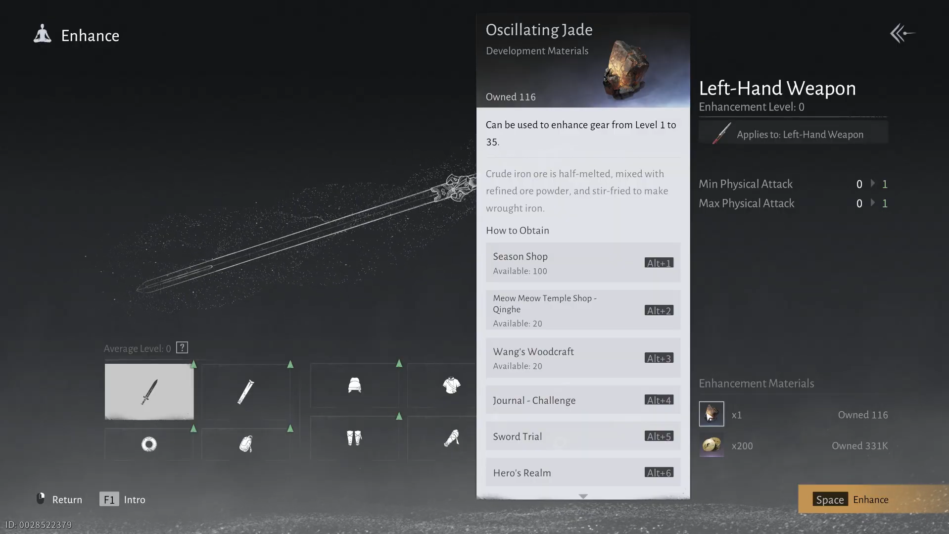 Avoid relying solely on quick enhance. Quick enhance tends to upgrade as many eligible slots as possible without regard for stat priorities, which spreads Oscillating Jade thinly across the board. Manually choosing your upgrade targets lets you emphasize either damage, durability, or specific hybrid setups, depending on what content you are playing.