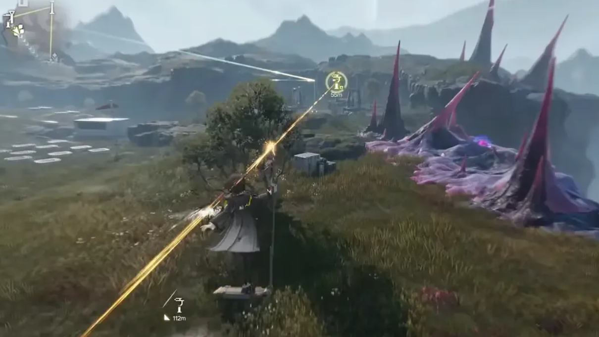Step 4: Walk back to the Electric Pylon and interact again to plug in the transmission cable. Once linked, the towers’ UIs and effects will indicate that they are powered.