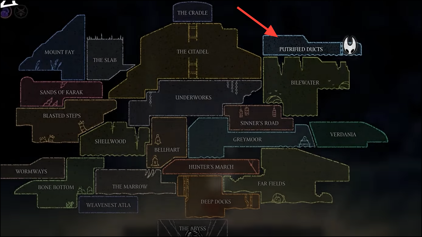 Step 1: From Fleatopia, head east into the Putrified Ducts. Navigate to the upper-right side of the cave system.
