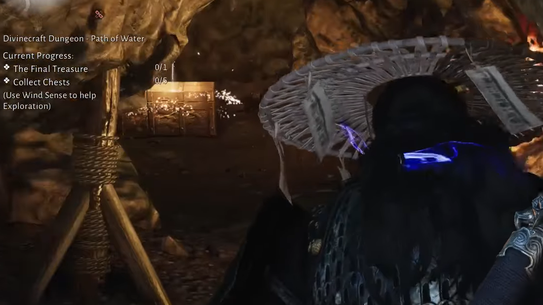 Path of Water is a Divinecraft Dungeon in Where Winds Meet, tucked behind a waterfall in the Petalfall Crossing area of Kaifeng. The entire dungeon revolves around one mechanic: bells and locks that only respond for a short time after you hit them, and a movable water spout that raises or lowers water levels through several rooms.