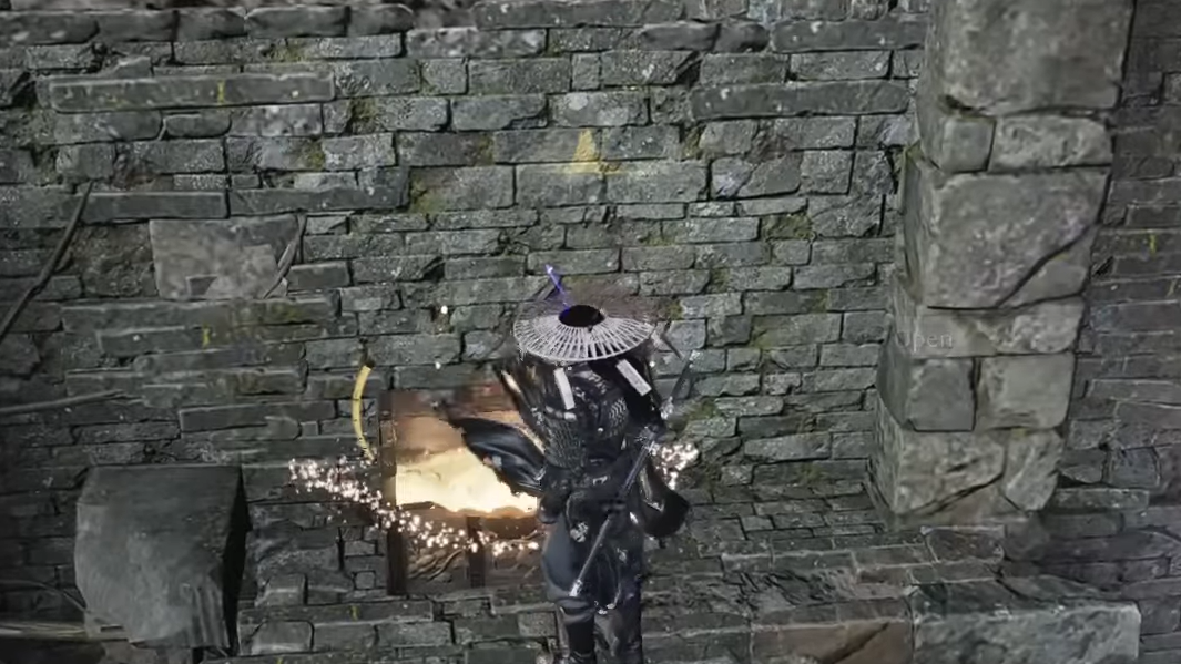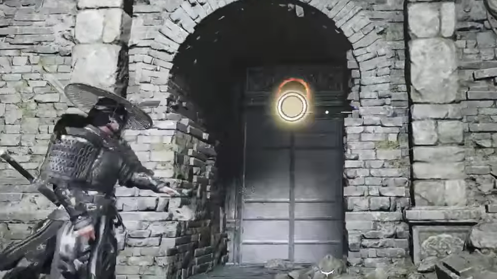 Step 4: Drop down to the lower level. Look for the stone door with a glowing ring around its seal. While the bell effect is still active, use Meridian Touch on the glow to break the lock.
