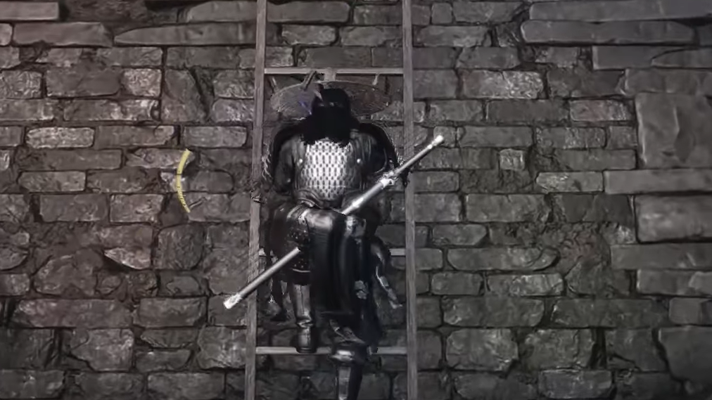 Step 3: Climb back up using the ladder or nearby surfaces to return to the top level of this third area.