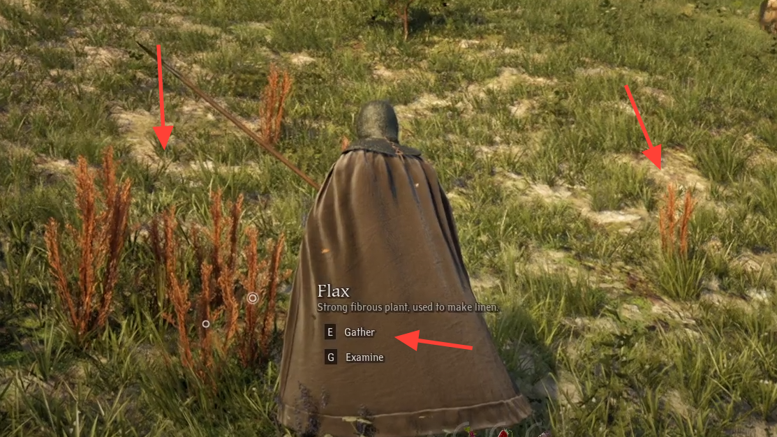 - Head for Grasslands or Blessed Meadows and scan for red‑orange flax clusters.