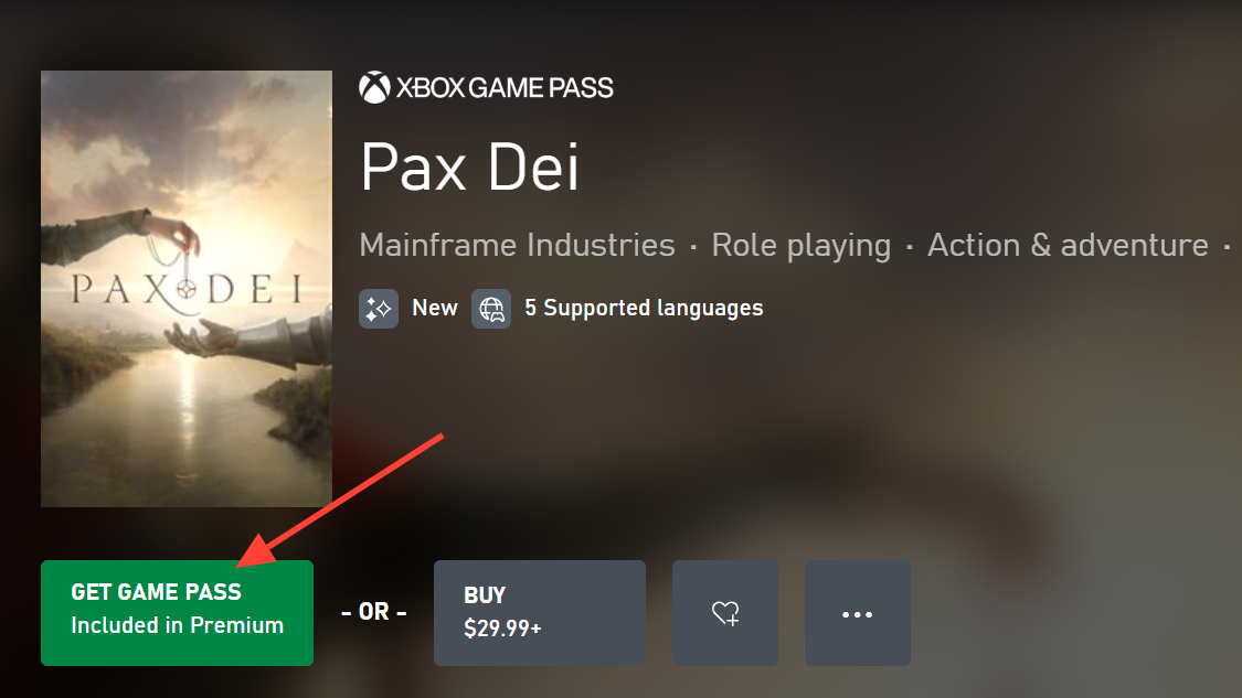On Windows, open the Xbox app and search for “Pax Dei,” then install from your library. You can also jump straight to the Microsoft Store listing to add it to your account if you’re signed in with an active subscription: Pax Dei on Microsoft Store.