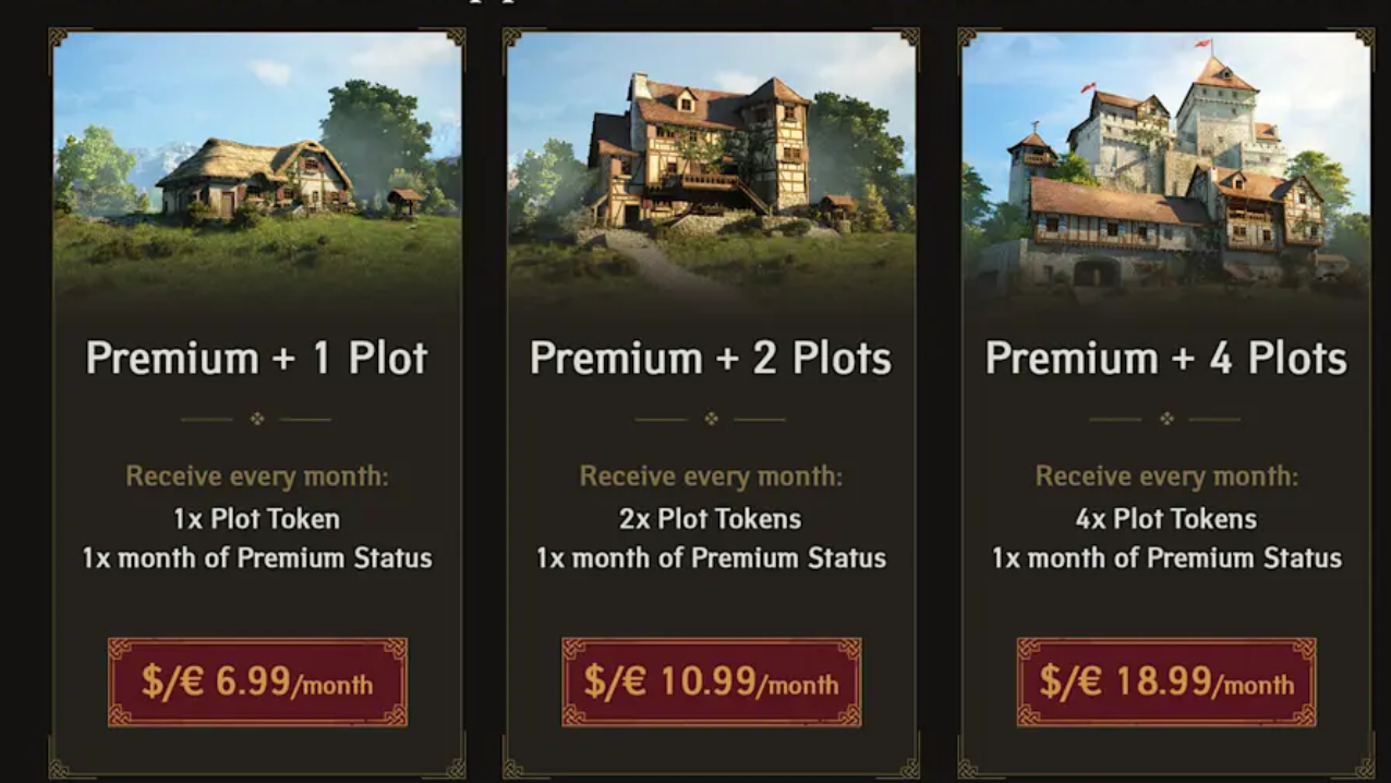 Pax Dei can be played without a membership. The Premium tier adds progression and land-claim benefits and is intended for players who want to build and expand a home or town: