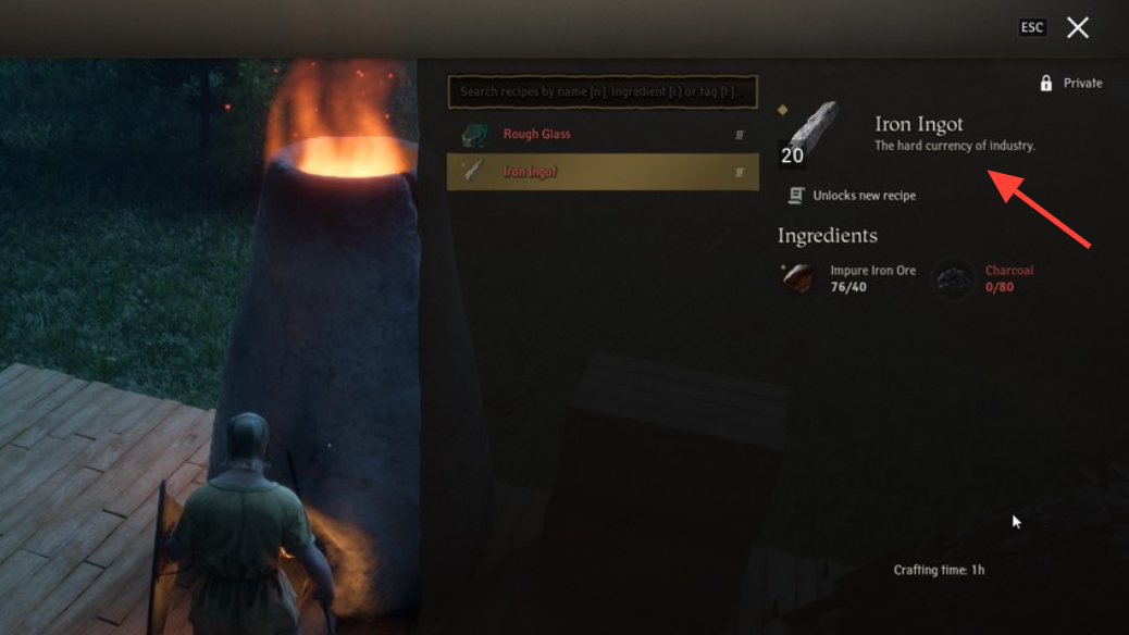 Expect wrought iron to open around the late teens. Steel-tier crafting arrives after that and assumes upgraded infrastructure.