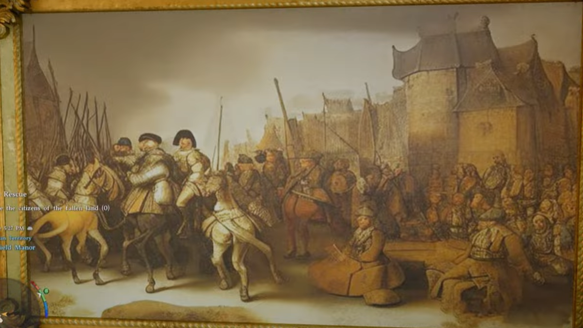 That first painting was only the beginning. Additional players quickly cataloged more examples scattered throughout the game world: signs depicting merchants with the wrong number of fingers on each hand, portraits of gentlemen with anatomically nonsensical proportions, and multiple horse-themed compositions where the animals' legs multiplied and merged with riders in ways no human illustrator would produce. Several of these images bore the hallmarks of models like DALL-E or early Stable Diffusion from around 2022 — technology that was notorious for mangling hands, limbs, and animal anatomy.