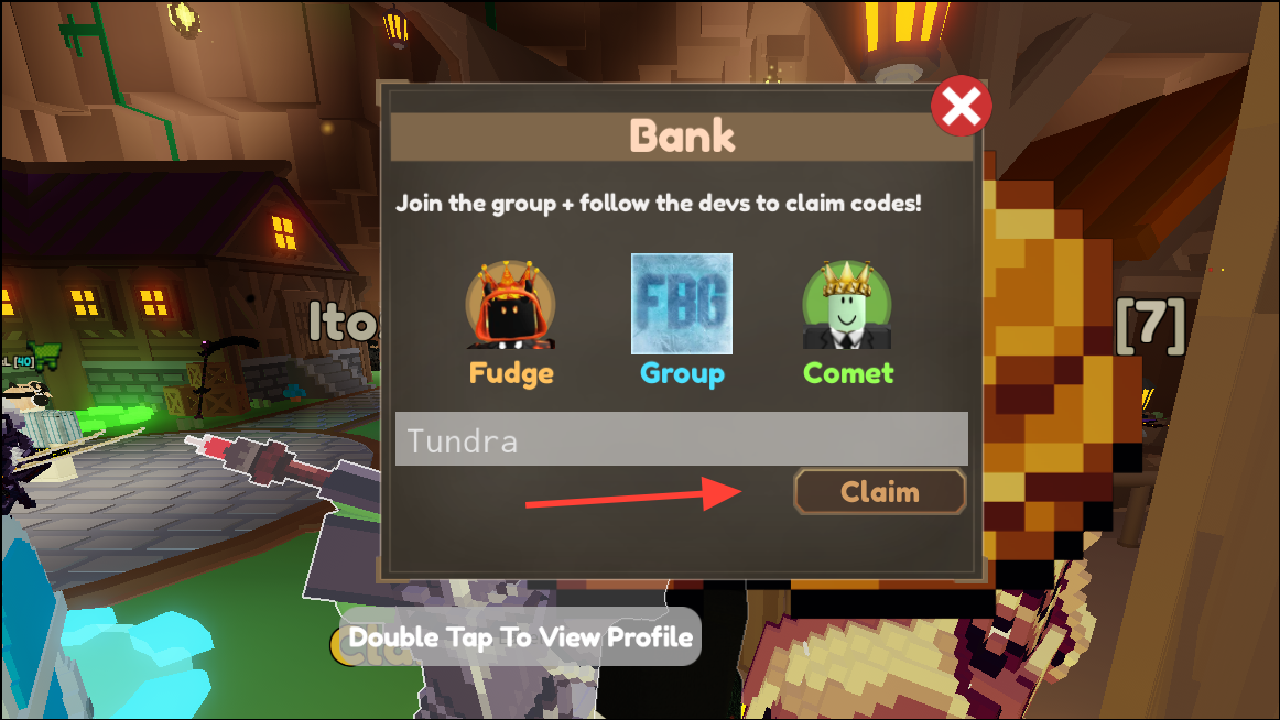 Tundra— 1 Revive, 300 Coins, 3 Godly Potions NEW200K— 500 Coins, 10 Dead Sticks NEW175K— 1,000 XP, 300 Coins, 3 Godly Potions NEWRings— 1 Ring, 300 Stardust150K— 1,000 XP, 400 Coins30M— 1,000 XP, 400 CoinsUpdate— 1,000 XP, 6 Dragon Flasks, 200 CoinsAlpha— 1,000 XP, 150 CoinsFBG— 1× Tier 1 Daily ChestTheo— 250 CoinsRaids— 500 Coins832740307654— Tier 1 Chest, 21 Coins, 20 XP, 4× L1 Cactus Sword, 18× Health Flask, 14× L2 Wooden Sword
