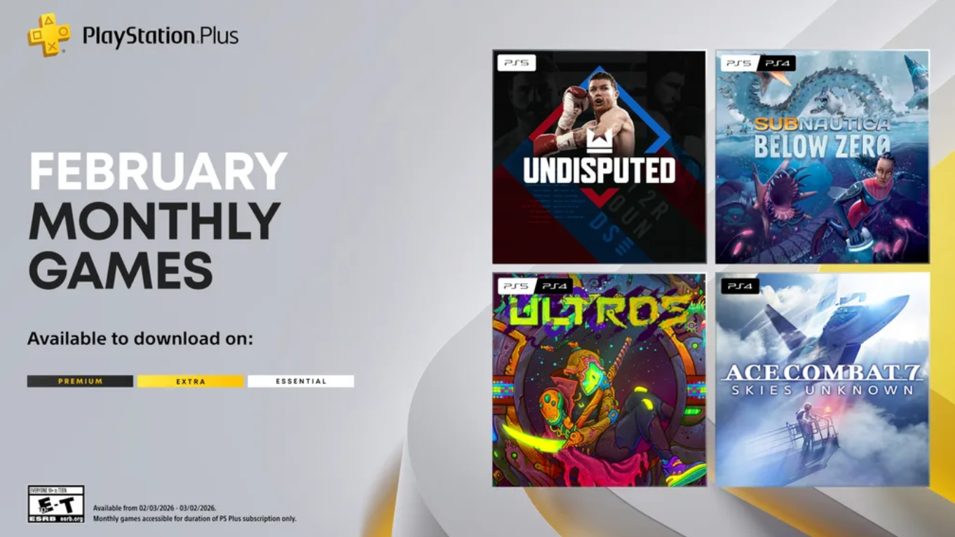 Starting February 3, PlayStation Plus members gain access to four titles through the monthly games benefit. Undisputed is an authentic boxing simulator with over 70 licensed fighters and a career mode spanning amateur tournaments to championship glory. Subnautica: Below Zero is a survival game set in an arctic ocean where you investigate what happened to your sister while managing resources and avoiding hostile creatures. Ultros blends brutal close-quarters combat with plant cultivation mechanics in a science-fiction setting. Ace Combat 7: Skies Unknown is an aerial dogfighting game featuring modern and futuristic fighter jets. All four games remain available until March 2.