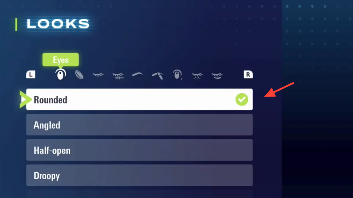 | Adjust other appearance details | Outfit & Looks menu | Browse tabs for facial and clothing options | Includes features like eye shapes, eyelashes, lip color |