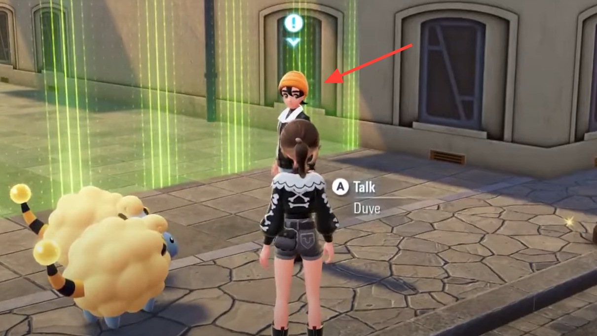 A short cutscene will trigger. After it ends, the Shiny Mareep is active at the rooftop spawn above. You can now engage and catch it.
