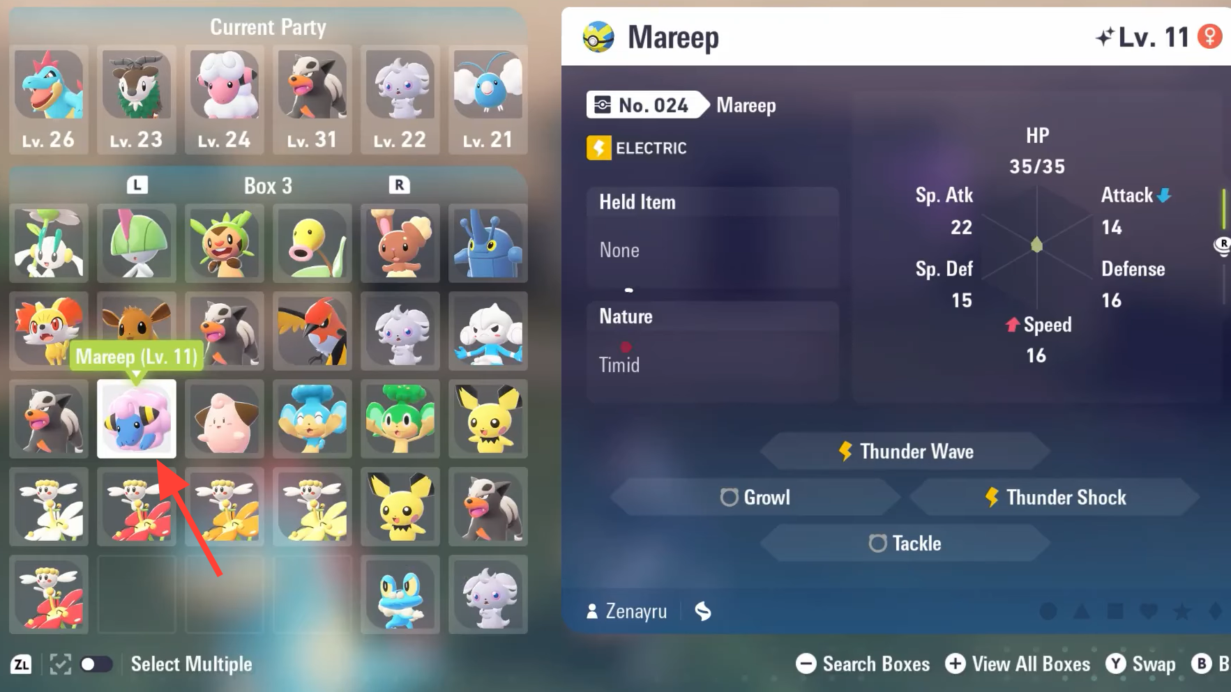 | Side mission | A Shiny Mareep? (Side Mission 17) |