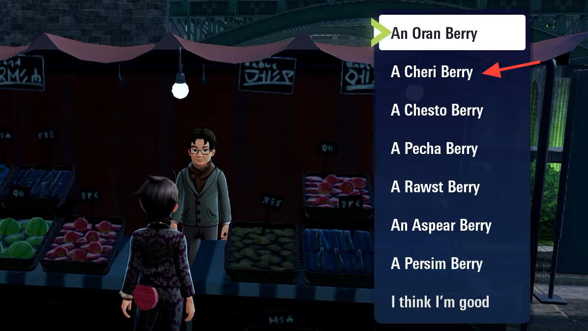 | Wild Zone 8 | Berry stalls | Vendors here carry the quest berries, including Cheri | ₽80 |