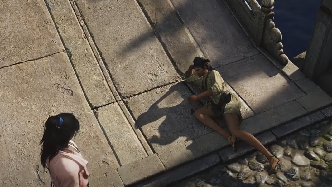 Step 2: On the northern bridge to the Imperial Palace, look for a man lying down on the ground. This NPC is Wang Qi, the drunkard linked to the quest. His model appears slumped or resting rather than standing, which makes him easy to miss if you only scan for upright NPCs.
