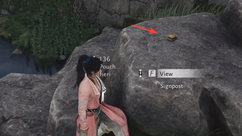 Step 3: Interact with the glowing prompt on the rock to pick up the Herb Pouch. Once you have it in your inventory, the objective updates and directs you back to Wu Xingping at the Li Estate.