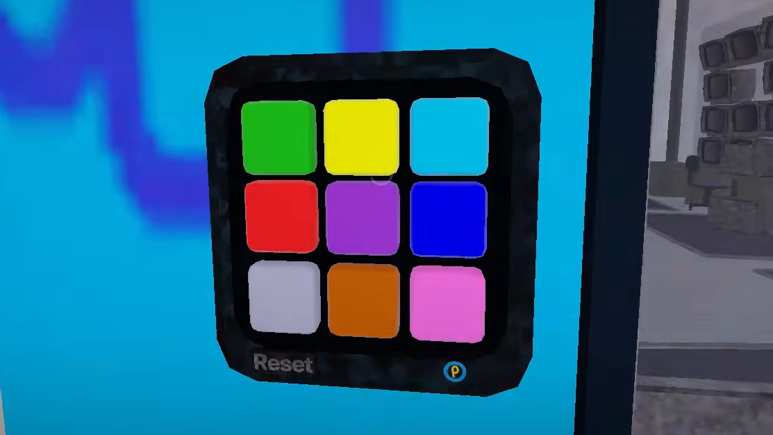The main puzzle in the Quality Chapter involves a colored keypad mounted on a wall. The keypad displays multiple colored buttons and includes a Reset button that clears your current input.