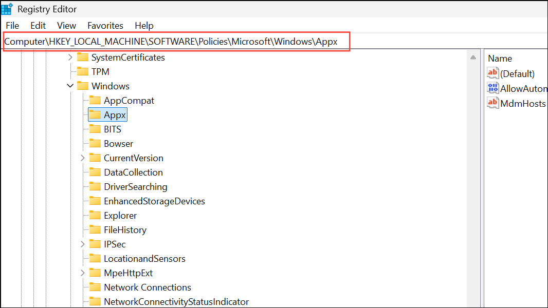 HKEY_LOCAL_MACHINE\SOFTWARE\Policies\Microsoft\Windows\Appx