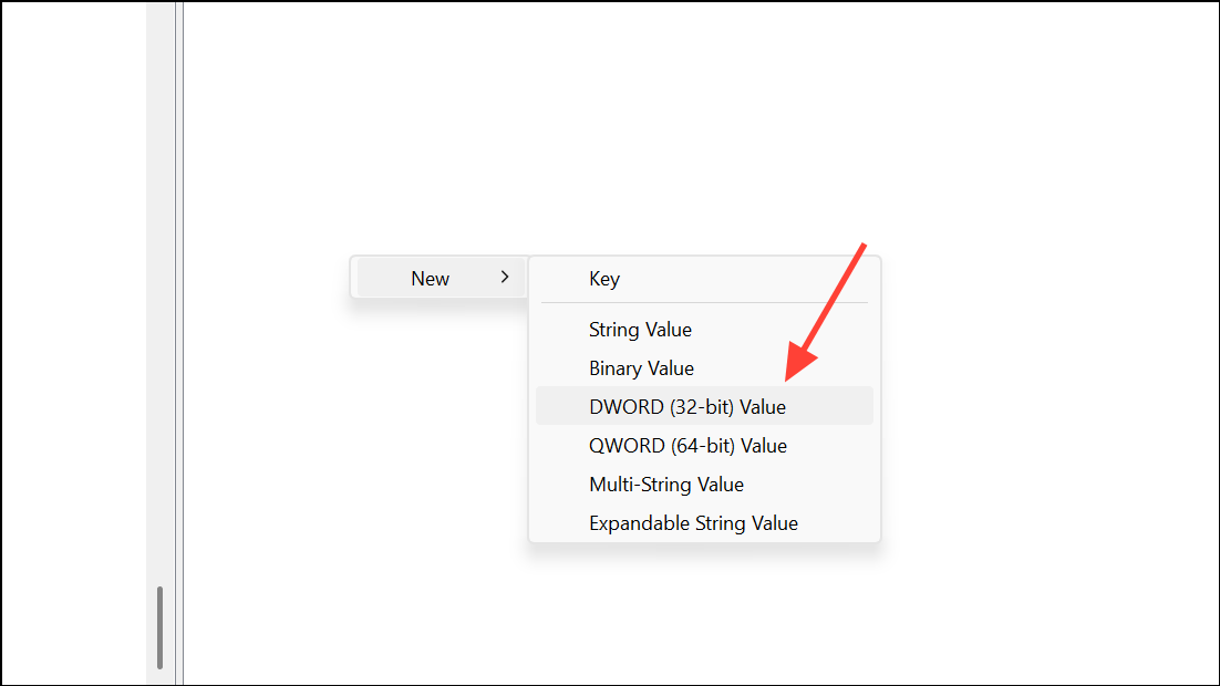 Step 3: Right-click in the right pane and select New > DWORD (32-bit) Value. Name the new value RestrictAppToSystemVolume.