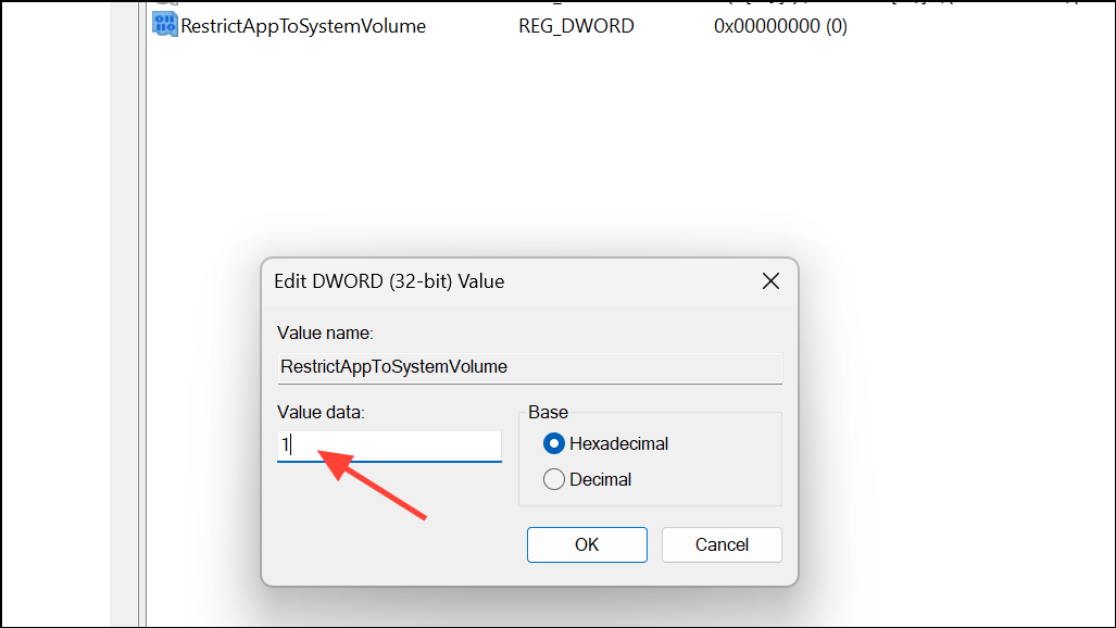 Step 4: Double-click the new value and set its data to 1. This enforces the restriction, preventing app installations or moves to non-system drives.