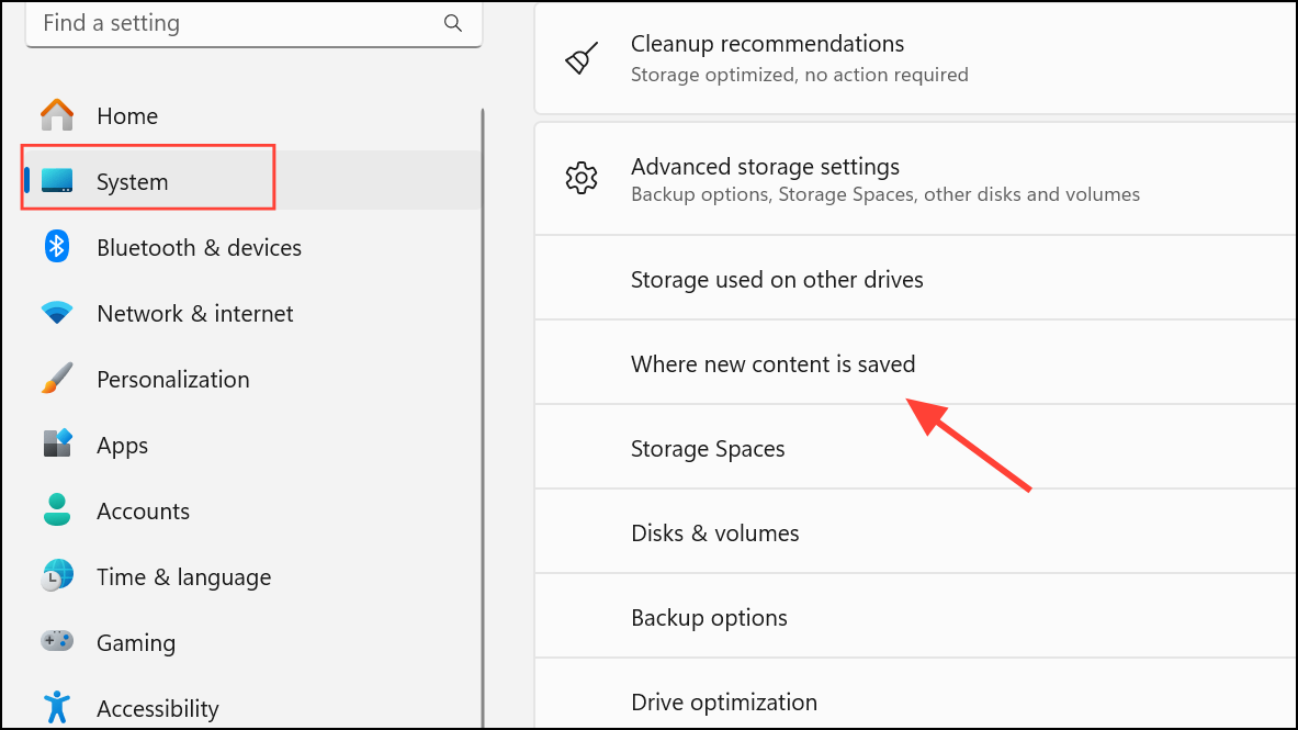It’s also recommended to periodically review app storage settings in Settings > System > Storage > Advanced storage settings > Where new content is saved to confirm that the system drive remains the default location for new app installations.