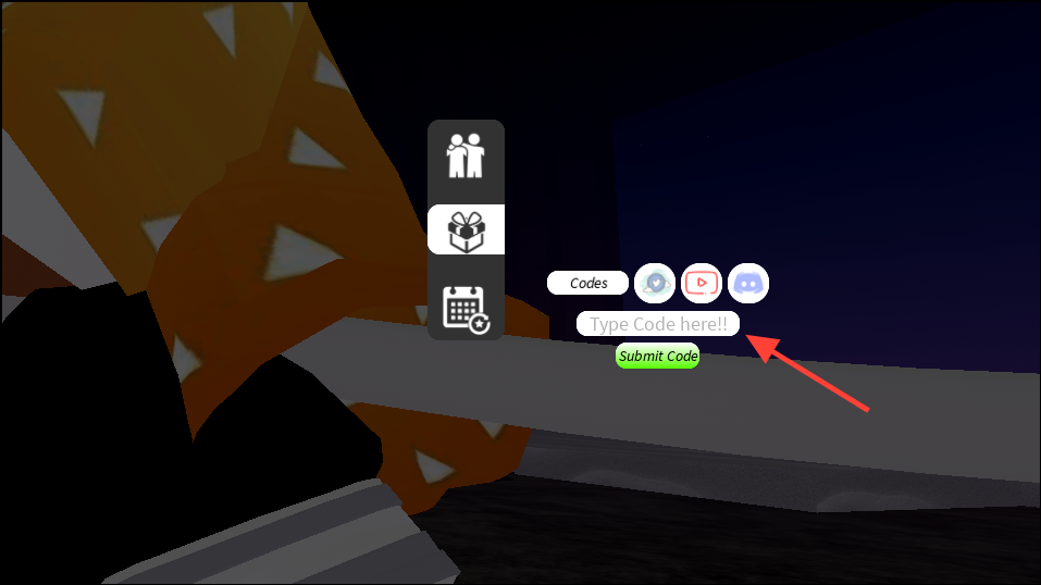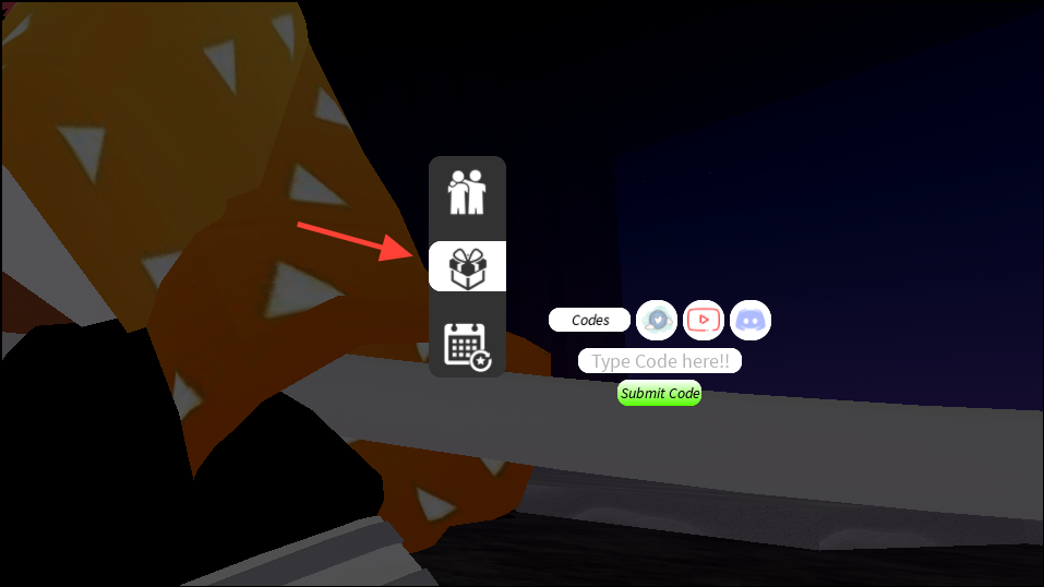 Step 2: Choose the Codes/Gift/Backpack-style icon to open the redemption box.