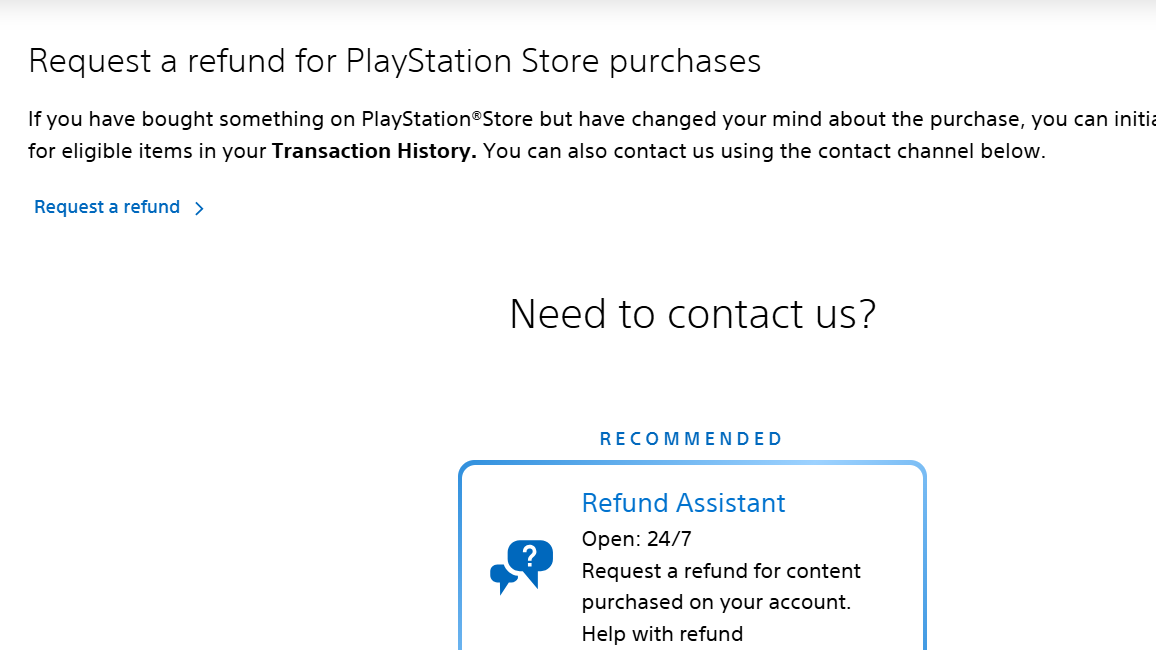 If the transaction history flow does not work or you cannot see a refund option, the next step is to contact PlayStation Support directly.