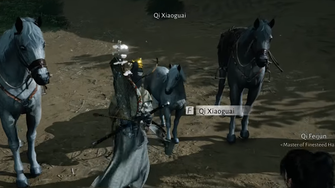 Both Qi Feijun and Qi Xiaoguai follow the game’s day–night cycle. They are active at the farm during daylight but go elsewhere to rest at night. If you arrive and see two larger horses but no small pony between them, or if Qi Feijun is not at his usual spot, the quest can appear blocked even though it is available.