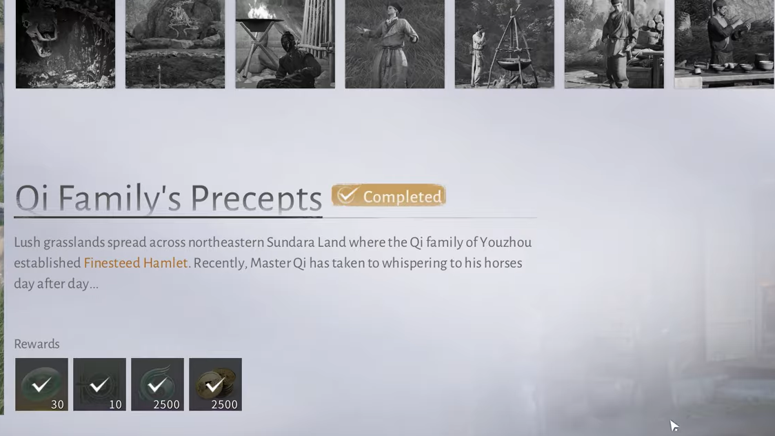 Finishing Qi Family’s Precepts grants a small but useful bundle of early-game rewards tied to Qinghe exploration: