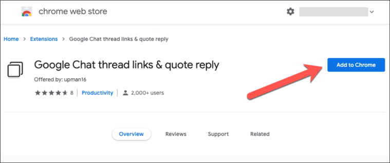 Step 3: Click on the extension named "Google Chat thread links & quote reply" from the search results, or access it directly using the link below: