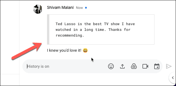 Quoting and replying to messages using Google Chat's new feature