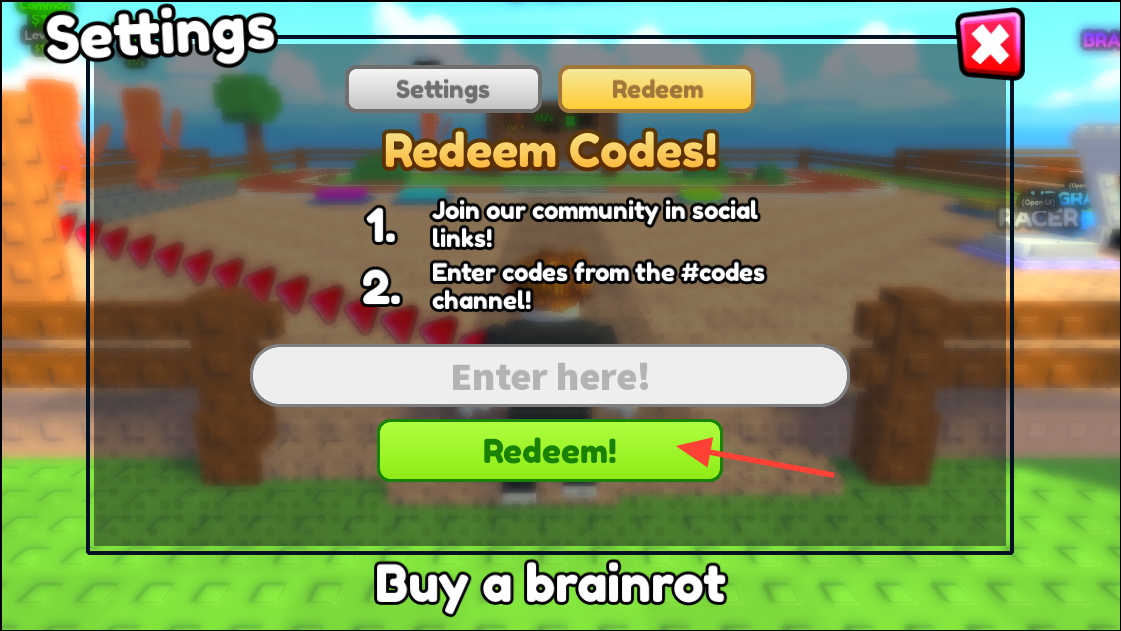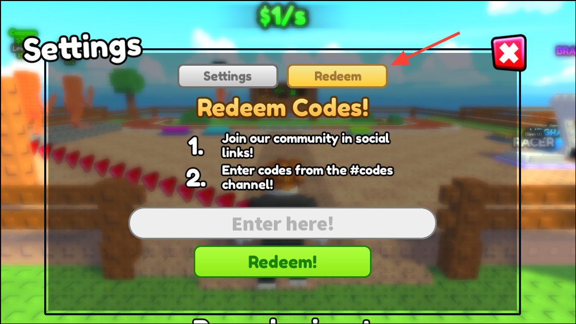 Step 5: Press Redeem to claim your reward. If it doesn’t appear, re-open the menu or rejoin the server and try again.