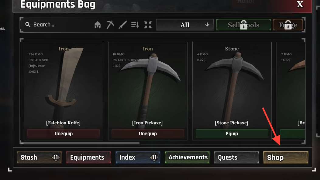 | 2 | Select the Shop tab at the bottom of the Personal Stash window. | The in‑game shop interface opens, showing multiple stone “slabs”. |