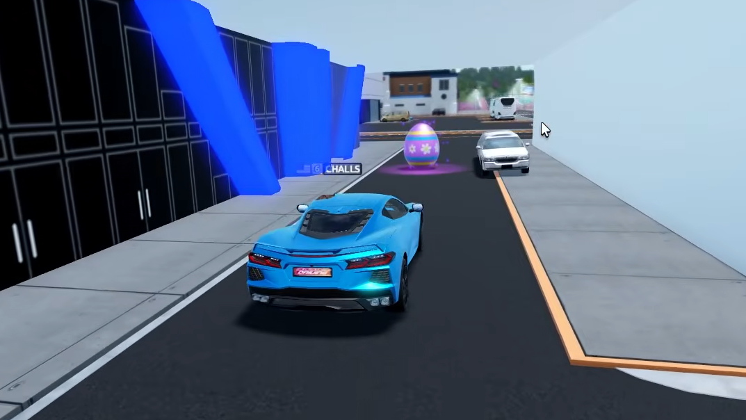 The hunt starts the moment you leave the spawn parking lot. Egg #1 sits right at the lot's exit, making it impossible to miss. From there, jump onto the rooftop of the nearest garage to grab Egg #2, then look for the white building with a limo parked in its passage for Egg #3.