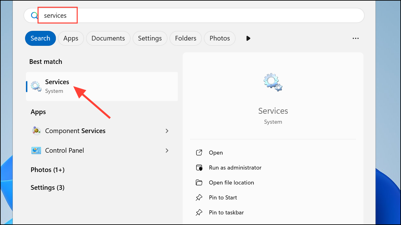 Step 1: Open the Start menu, type Services, and press Enter.