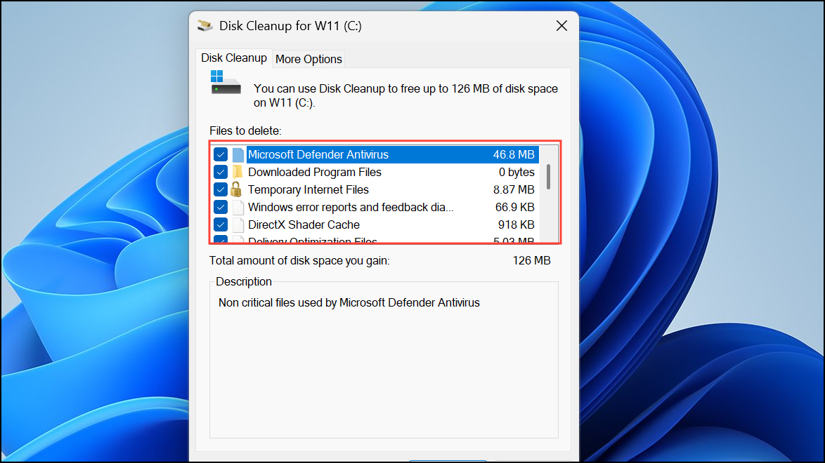Step 2: In the Disk Cleanup dialog, select your system drive (commonly C:) and let it calculate potential space savings. Once loaded, click Clean up system files to rescan and include system-level items like previous Windows installations.