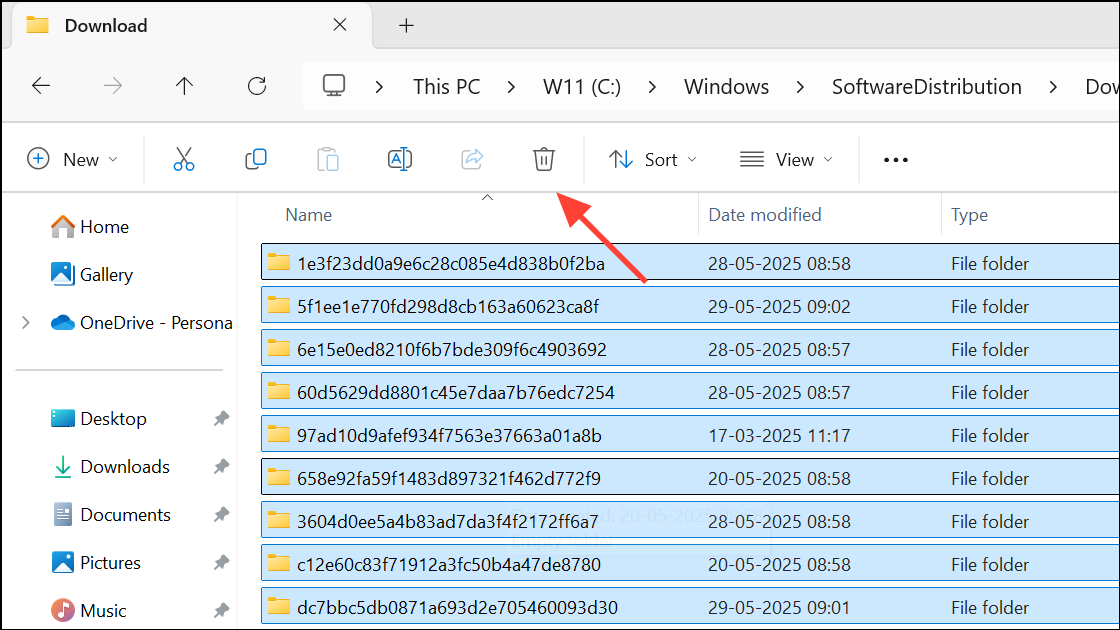Step 3: Open File Explorer and navigate to C:\Windows\SoftwareDistribution\Download. Delete all files in this folder to clear out pending update downloads.