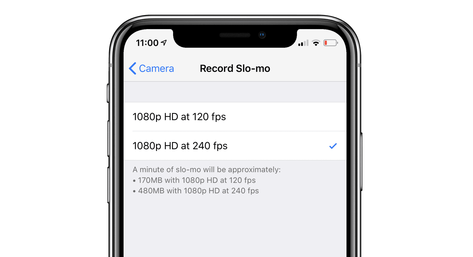 Before you start recording slow motion videos on your iPhone XS or iPhone XR, make sure the slow-motion recording settings are correctly set by going to Settings » Camera » tap Record Slo-mo and select the Slo-mo recording fps setting to either 240 fps or 120 fps, as per your requirement.