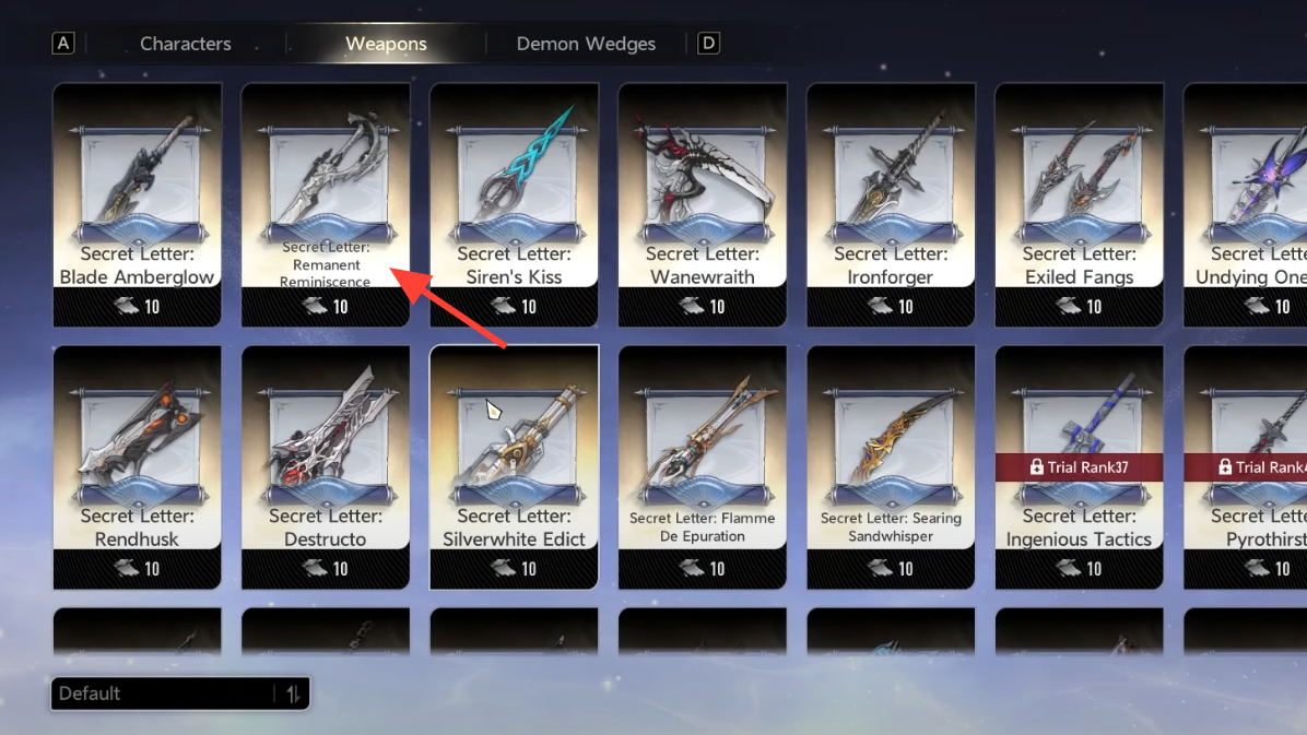 Weapons in Duet Night Abyss are earned through the Secret Letter and Covert Commission systems. You’re looking for a weapon-category Covert Commission that can award the Remanent Reminiscence blueprint and its materials.