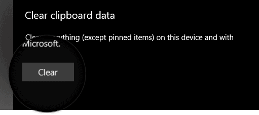 Step 4: Under the Clear clipboard data section, click on the Clear button. This will erase your entire clipboard history.