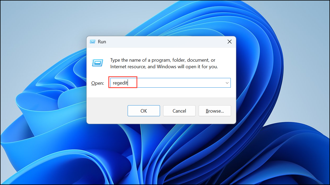 Step 1: Open the Windows Registry Editor. Press Win + R to launch the Run dialog, type regedit, and press Enter. If prompted by User Account Control, select "Yes" to continue.