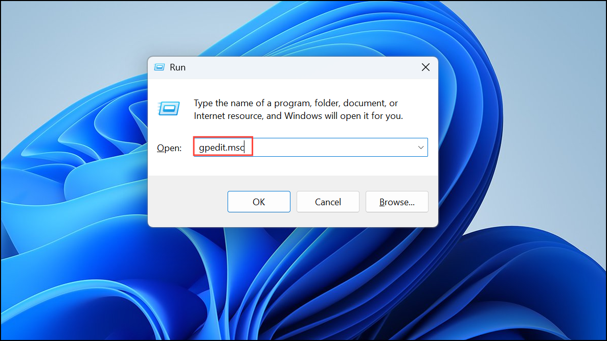 Step 1: Open the Local Group Policy Editor. Press Win + R, type gpedit.msc, and press Enter.