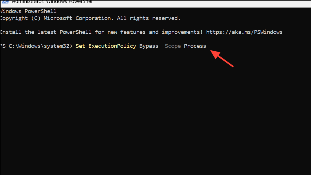 - Run PowerShell elevated and set a permissive execution policy for the session to avoid script execution blocks.