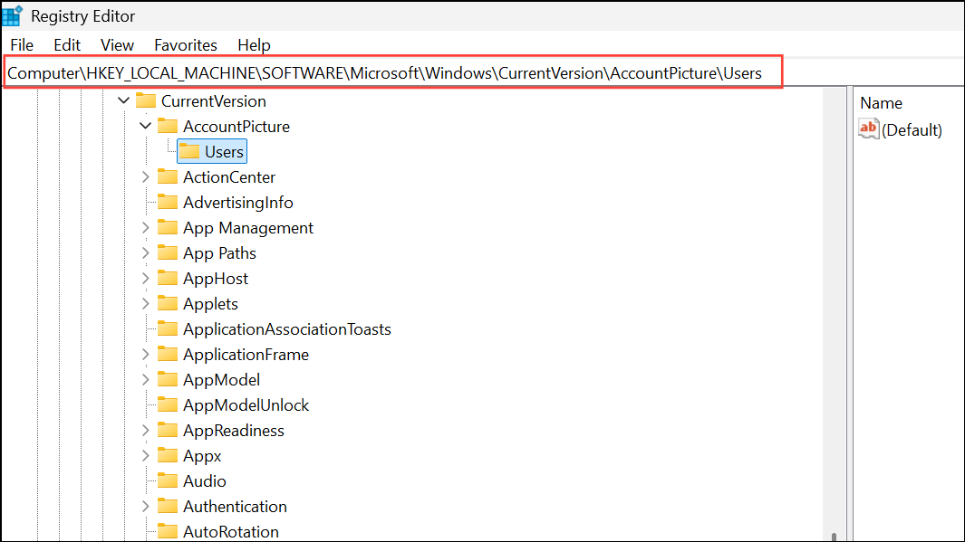 Step 2: Navigate to HKEY_LOCAL_MACHINE\SOFTWARE\Microsoft\Windows\CurrentVersion\AccountPicture\Users. Under ‘Users’, you’ll see one or more subkeys named with long strings (these are user security identifiers).