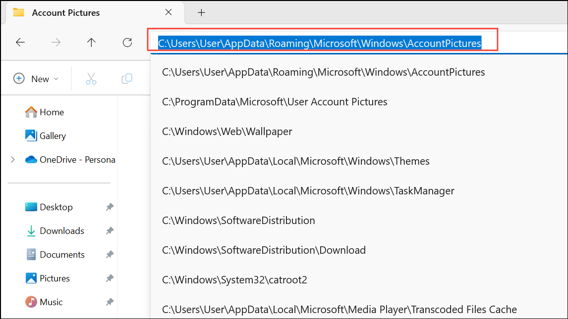 Step 3: After switching to a local account, open File Explorer and navigate to C:\Users\YourUsername\AppData\Roaming\Microsoft\Windows\AccountPictures. Delete any images in this folder to remove previously used account pictures.