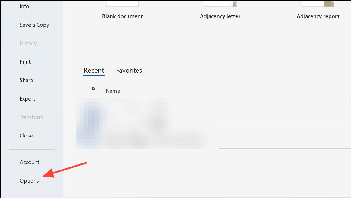Step 1: Open the Word document, then select File from the top menu and click Options.
