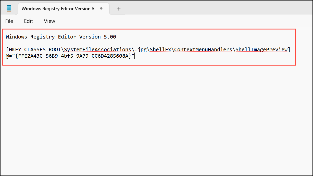 [-HKEY_CLASSES_ROOT\SystemFileAssociations\.jpe\ShellEx\ContextMenuHandlers\ShellImagePreview]